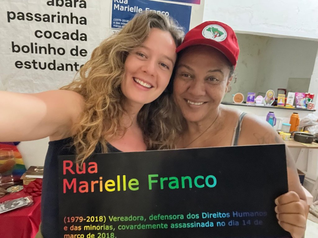 “Na verdade, quando as mulheres me chamam, né, para estar na frente nacionalmente, é porque elas já sabem [dessas experiências]. Então, eu já tenho uma experiência de estar fazendo essa movimentação. Eu estou desde o começo, porque o movimento ele não começa agora”, conta. “Assim, quem tava pegando pesado mesmo é a Casa Marielle Franco e nós começamos a chamar as outras mulheres e de outros movimentos e falar: ‘Olha, é o seguinte, nós vamos fazer sozinhas. Se vocês não quiserem, nós vamos para a rua mesmo assim”.