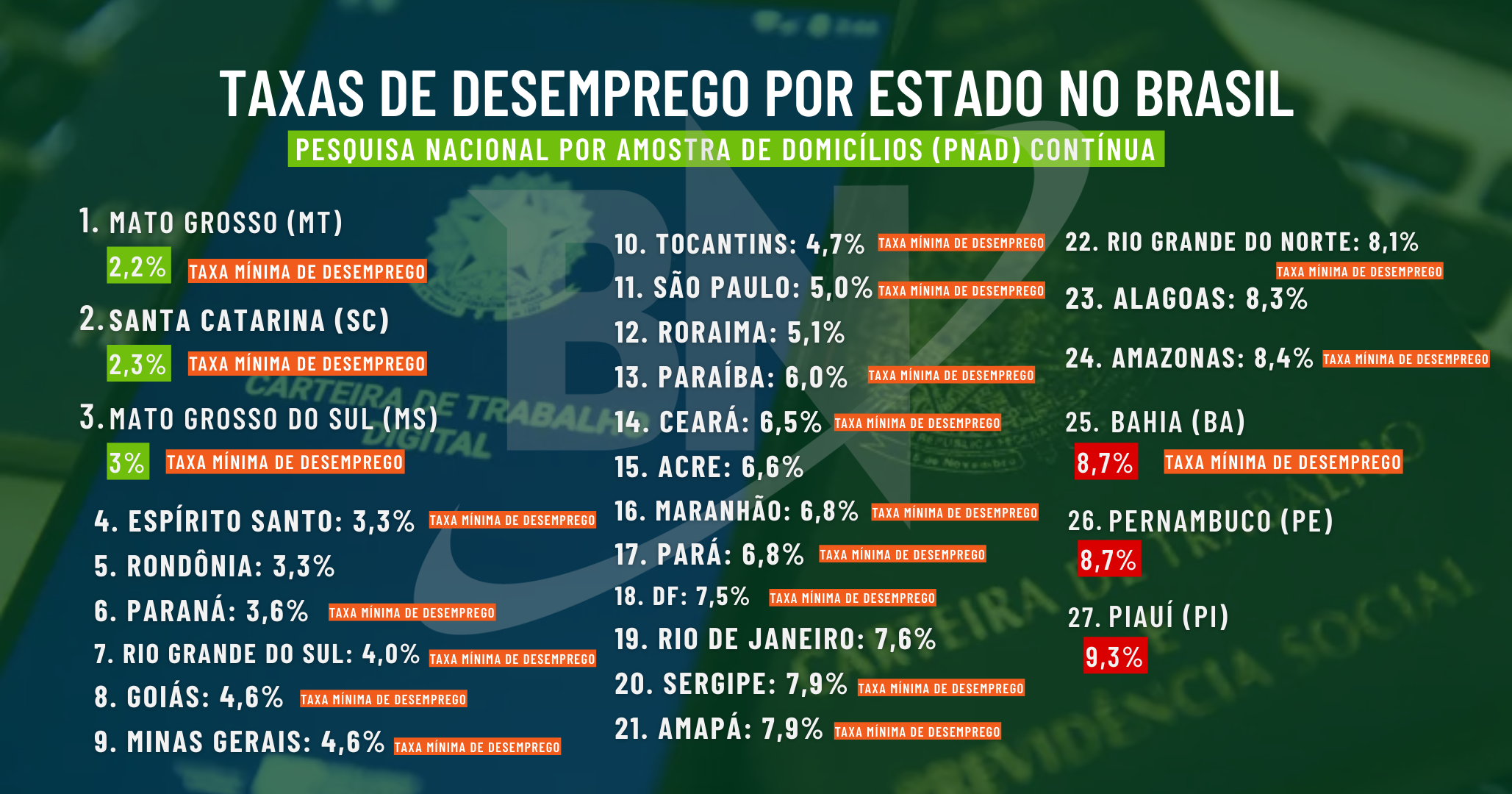 Os dados consolidados de 2025 revelam que das 27 UFs, 12 ficaram abaixo da média nacional (5,6%); e 15 superam o desemprego médio no país. Três estados do Nordeste apresentam as maiores desocupações.