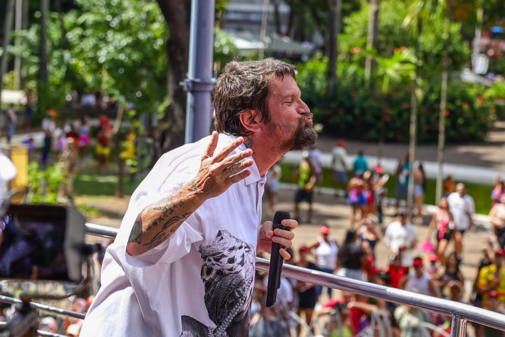 Saulo ainda voltará para fazer um show em camarote nesta segunda-feira (16), mas hoje foi sua última apresentação para o folião pipoca. Na sexta-feira (13), o cantor também tinha arrastado o trio com a Pipoca do Saulo no Campo Grande, enquanto no sábado (14), ele fez o show na varanda do Camarote Salvador.
